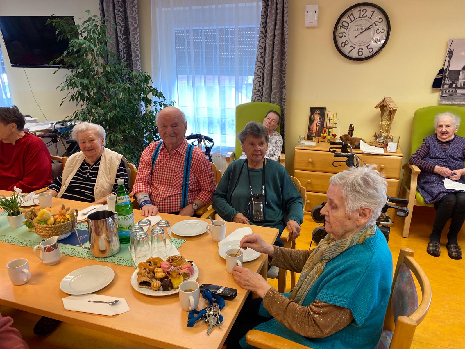 Kürzlich fand wieder das regelmäßige Treffen „Bewohner:innenkaffee“ im SeneCura Sozialzentrum Kittsee statt. Bei diesem Programmpunkt wird bei Kaffee und Kuchen fleißig geplaudert und gelacht. Die Hausleitung des Sozialzentrums lädt dazu ein, um mit den Bewohner:innen in den Austausch zu kommen und jenen die Möglichkeit zu bieten, über Dinge zu reden, die gut laufen und solche, die besser laufen könnten. Der Hausleitung gelingt es so, die Bewohner:innen besser kennenzulernen und der Entwicklung des Sozialzentrums stetig nachzugehen. Zu jedem „Bewohner:innenkaffee“ wird ein bestimmtes Thema überlegt und diesmal war es das Motto „Mein erster Kuss“ – es war unterhaltsam und schön, an den Erinnerungen der Bewohner:innen teilnehmen zu dürfen. Das regelmäßige Treffen sorgt für ein stetiges Kennenlernen, die Stärkung der Gemeinschaft im Sozialzentrum und eine Menge Spaß.